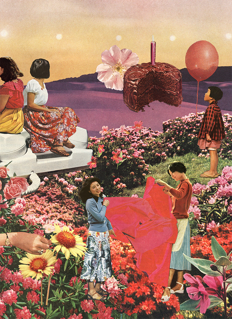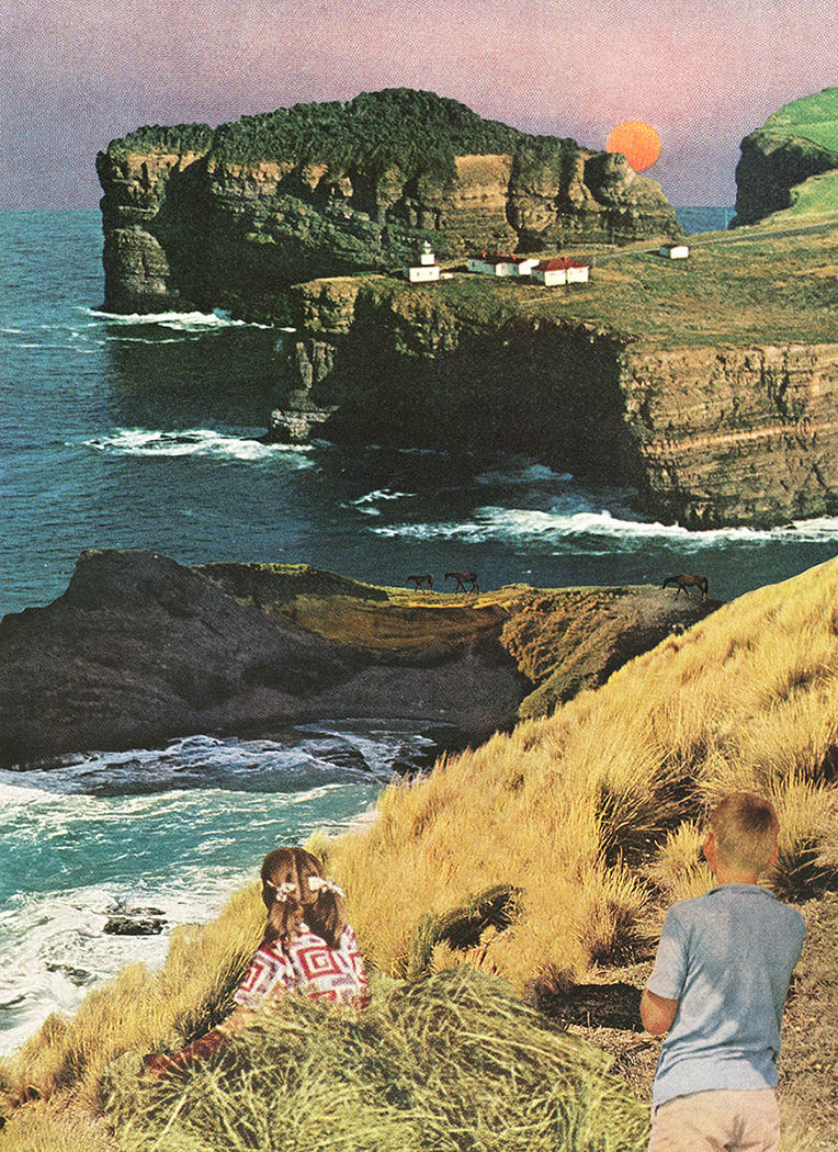 I've created collages for a couple short stories in Canada-based magazine, Fashion. The first serves as an illustration for a narrative about the author's mother and how the month of May is a very nostalgic time for her to reflect on the times they had together as she grew up. I incorporated imagery based on the storyline such as springtime, sewing, floral dresses, and talks on the telephone. The second illustration is based on a story from the perspective of a young girl and her new relationship with a boy on Bell Island during the month of October. I incorporated imagery based on the storyline such as autumn, sunset, hay bales, horses, Bell Island, and the two main characters.